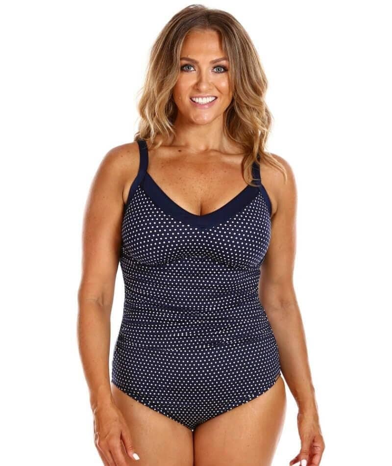Capriosca Chlorine Resistant Underwire One Piece Swimsuit - Navy & White Dots Swim