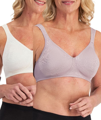 Exquisite Form Fully Cotton Soft Cup Wire-Free Bra With Lace 2 Pack - Damask Neutral/White