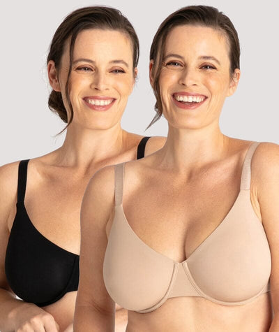 Underbliss Invisibliss Moulded Microfibre Underwire Bra 2 Pack - Black/Nude