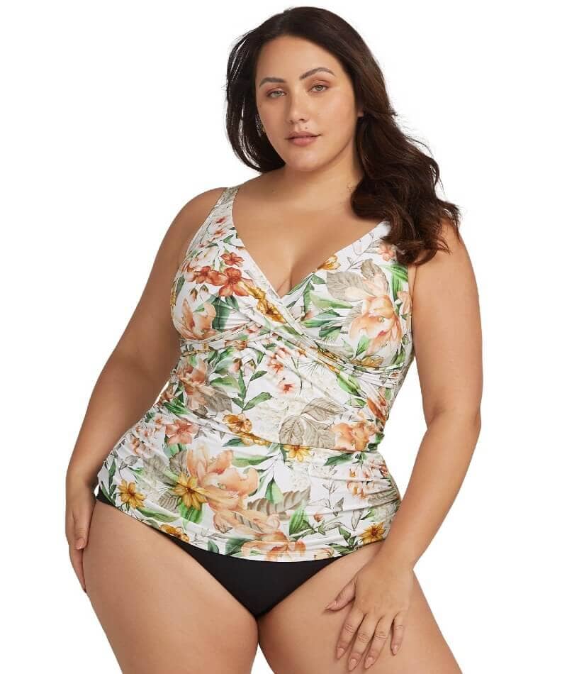 Artesands Fits Your Curves. Our Delacroix tankini top is our wire free comfort and support style. Every woman needs a swimsuit that makes you feel good when you put it on and this is our curve fit and plus size shape Delacroix. A tankini is the perfect option for full coverage when you need a different size top and bottom. Our curve fit and plus size tankini tops are a long line to avoid the fabric riding up when you're in the water.
