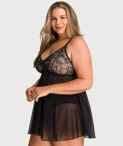 Ava & Audrey Candice Mesh & Lace Babydoll - Black