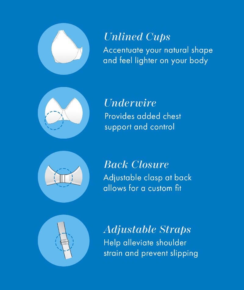 • Built with unlined cups for lightweight comfort that accentuates your natural shape.