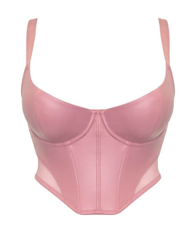 Storm in a D-J cup! Designed to be worn as outerwear, Storm is a longline bra style which manifests as a corset top. The faux leather bodice hits just above the hips to accentuate your curves as the non-padded half cup shape lifts the bust for incredible cleavage. This longline bra is a bombshell for your wardrobe, here's to wearing the outfit you always dreamt of as a fuller bust babe!