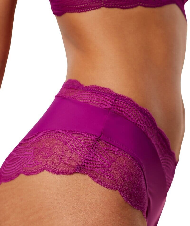 An irresistible and comfortable new lace series. High coverage, sensual, and fabulous. Body-hugging stretch lace softly flatters your shape. Form-fitting design for a seamless look.